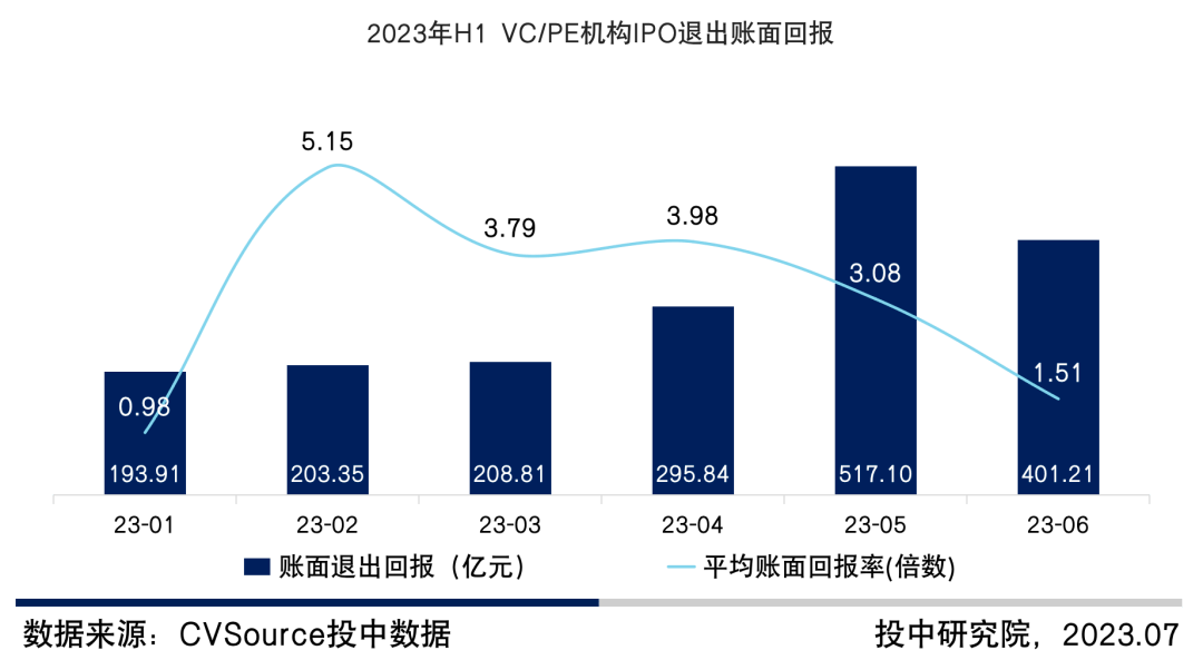 图1 2023年H1 VC/PE机构IPO退出账面回报