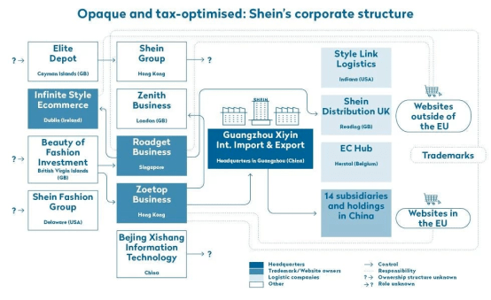 ▲ 图片:投诉中引用的图片强调了 SHEIN 的“复杂的公司结构”。(来源:www.PublicEye.ch )
