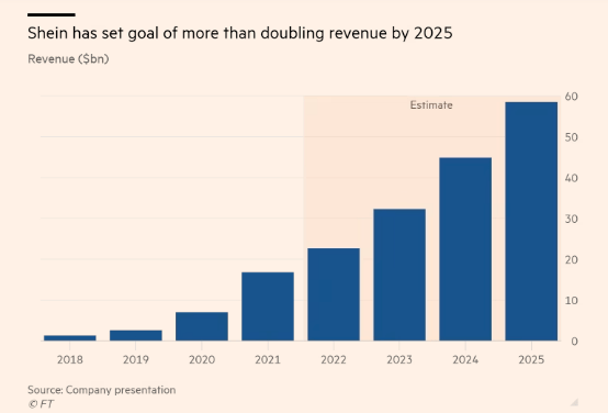 ▲ 图片:SHEIN设定了到2025年收入翻一番以上的目标(图片来源:《金融时报》)