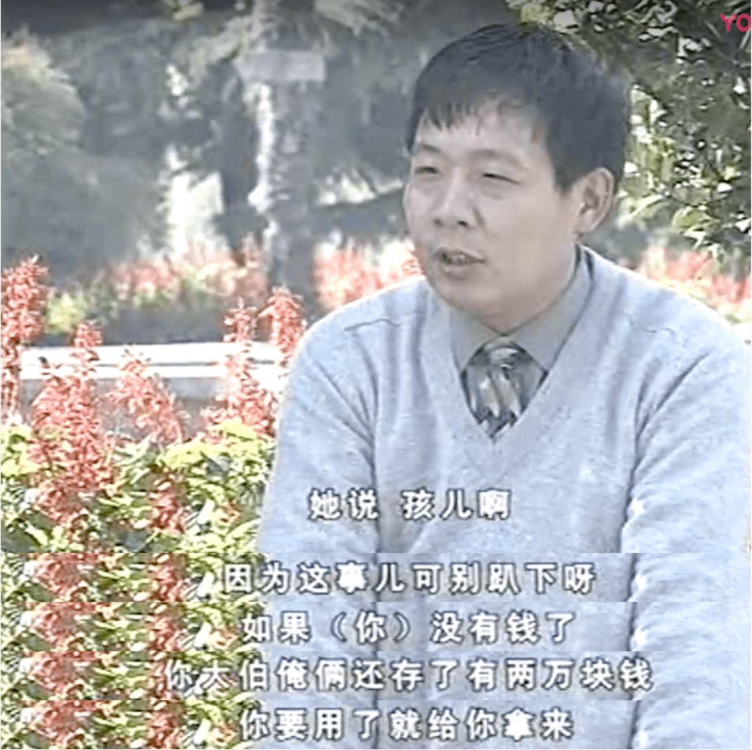 一个大娘找到于东来,对他说:“孩儿啊,因为这事儿可别趴下,不要因为这一点事儿站不起来,要是没钱了,大娘和大伯还存了两万块钱,可以拿给你用。”