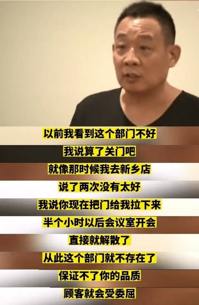 他立刻让负责人拉下门店的大门停止营业,半小时后他解散了整个部门,于东来说:“保证不了你的品质,客户就会受委屈”。