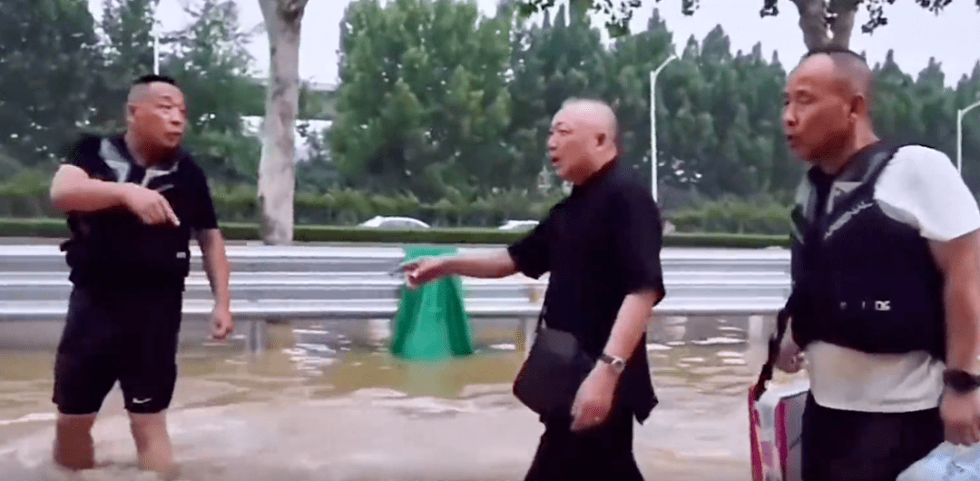 河南水灾时支援的于东来(左)