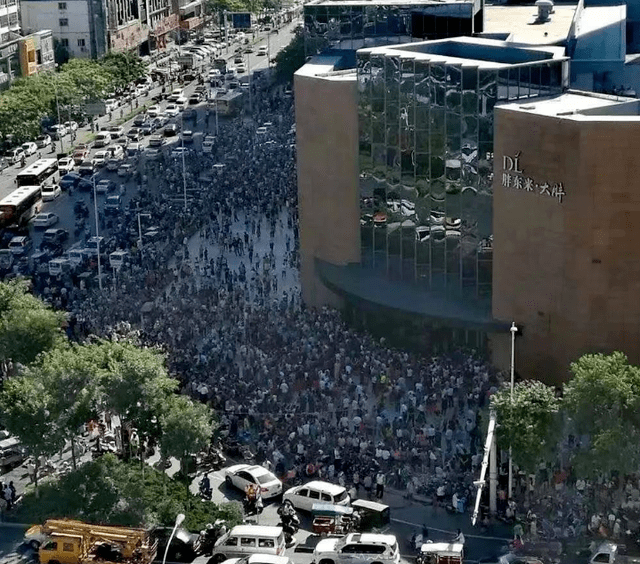 平日里等待进入胖东来(新乡大胖店)购物的人群