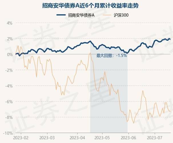 7月19日,招商安华债券A最新单位净值为1.1493元,累计净值为1.1821元,较前一交易日下跌0.1%。历史数据显示该基金近1个月上涨0.56%,近3个月上涨0.45%,近6个月上涨1.86%,近1年上涨3.34%。该基金近6个月的累计收益率走势如下图: