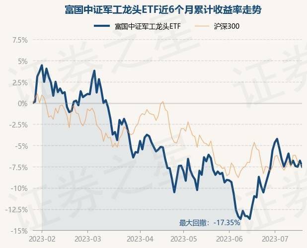 7月19日,富国中证军工龙头ETF最新单位净值为0.6864元,累计净值为1.3728元,较前一交易日下跌0.78%。历史数据显示该基金近1个月上涨4.05%,近3个月下跌1.0%,近6个月下跌7.51%,近1年下跌15.05%。该基金近6个月的累计收益率走势如下图: