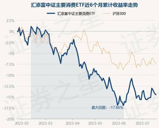 7月19日,汇添富中证主要消费ETF最新单位净值为0.936元,累计净值为3.744元,较前一交易日下跌0.13%。历史数据显示该基金近1个月下跌2.63%,近3个月下跌7.39%,近6个月下跌14.47%,近1年下跌14.96%。该基金近6个月的累计收益率走势如下图: