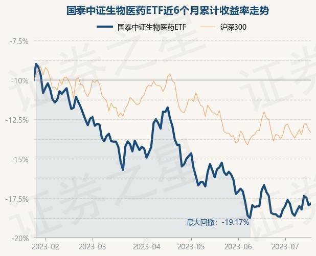 7月18日,国泰中证生物医药ETF最新单位净值为1.1159元,累计净值为1.1159元,较前一交易日上涨0.3%。历史数据显示该基金近1个月下跌2.67%,近3个月下跌11.32%,近6个月下跌15.65%,近1年下跌14.39%。该基金近6个月的累计收益率走势如下图: