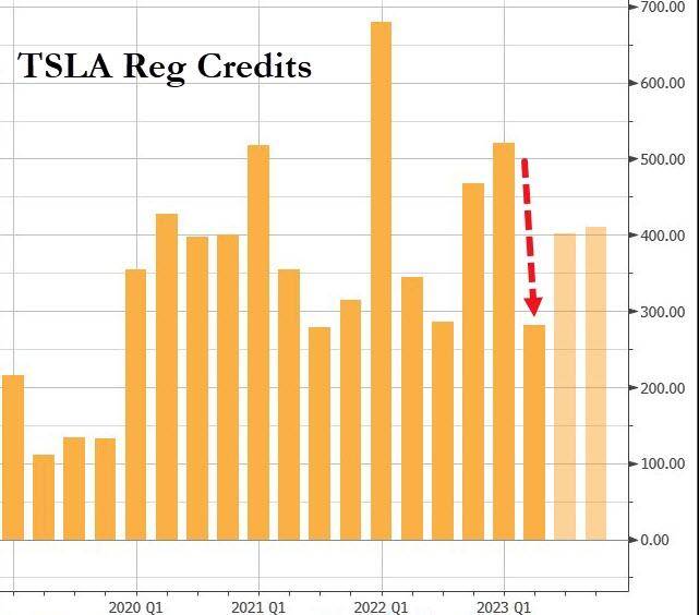 值得一提的是,特斯拉以往盈利的一大推手——“卖碳”的收入明显缩水,未能成为营收增长的助力。二季度特斯拉通过出售碳排放信用额度获得收入2.82亿美元,较一季度的5.21亿美元剧减45.9%,跌至2021年三季度以来低位。