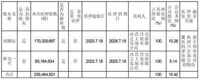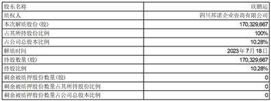 2、2023年7月18日,和光一至在中国证券登记结算有限责任公司办理了股份质押解除手续,解除质押公司股份85,164,834股。具体情况如下: