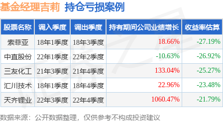 吉莉管理的国投瑞银瑞祥A基金在18年1季度买入索菲亚,在持有2个季度后在18年3季度卖出。持有期间的估算收益率为-27.19%,持有期间索菲亚在2017年到2018年的年报营业总收入增幅达18.66%。