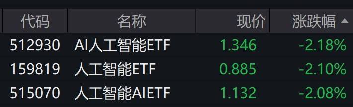 原标题:AI板块早盘走弱,AI人工智能ETF跌逾2%