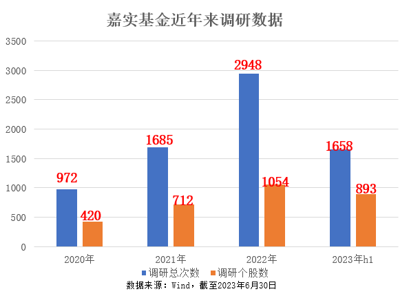 根据Wind数据统计,嘉实基金2020年、2021年、2022年上市公司调研总次数和调研个股数均位列行业第一。截至2023年6月30日,今年来嘉实基金调研1658次,调研个股数893只,两项指标近三年排名行业首位。调研行业主要聚焦于高端制造业、互联网软件与服务等板块。这也与嘉实一直以来前瞻挖掘并提前布局时代领先资产的投资目标相契合。