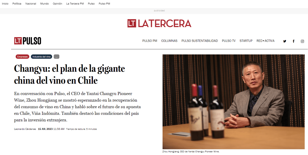 7月15日,智利第二大报La Tercera刊登对张裕公司董事长周洪江的专访,文章写道:“自从张裕公司收购智利魔狮酒庄以后,酒庄已经进入了对中国最具影响力前20大智利酒庄之列。”