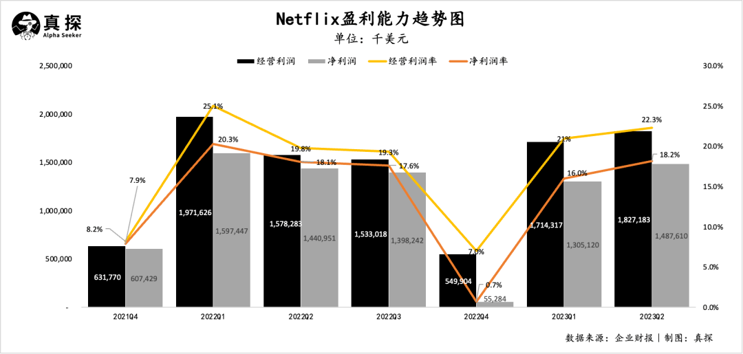 一边通过付费共享、广告订阅来吸引更多新增用户数,获得收入增长,另一边奈飞也在缩减不必要的支出成本,注重回报率,提升整体的盈利能力。