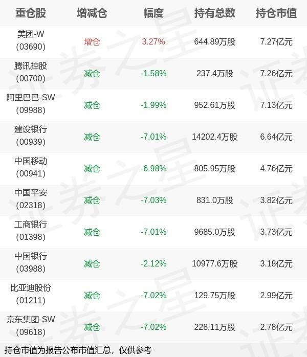 原标题:易方达基金余海燕旗下易方达恒生中国企业中报最新持仓,重仓美团-W