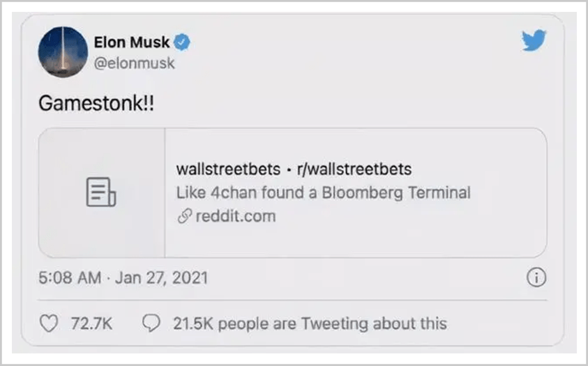 最后,爱凑热闹的世界首富马斯克也跑了出来,发推为散户们摇旗呐喊。