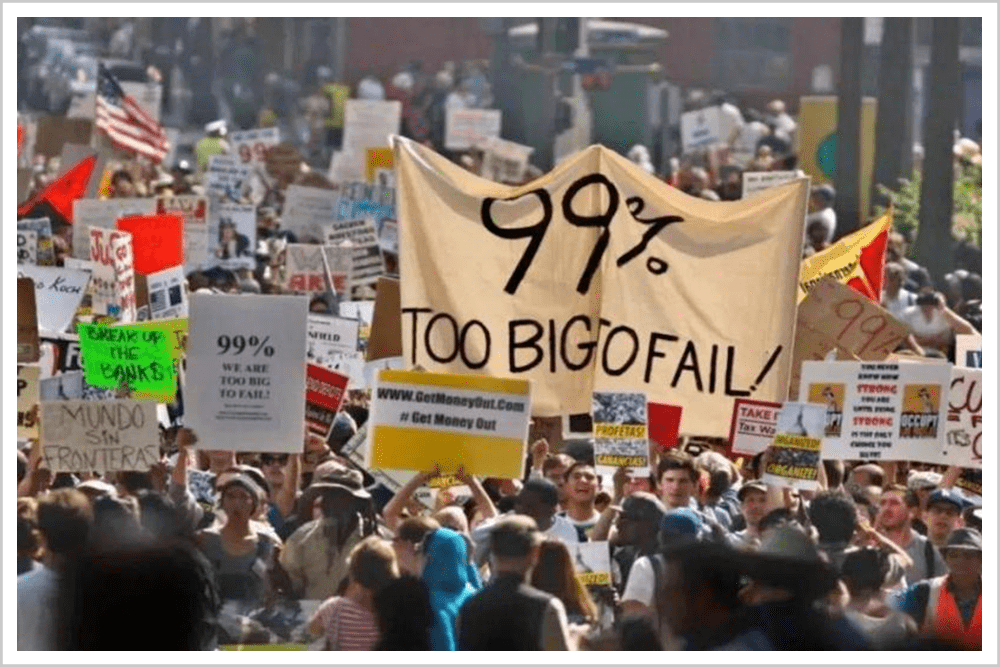 当时,2008年次贷危机余波未平,抗议者聚集在纽约曼哈顿,痛斥大银行、金融机构的贪婪暴利,试图“占领”华尔街。这场运动迅速蔓延,在全美乃至全世界掀起了大范围的示威潮。