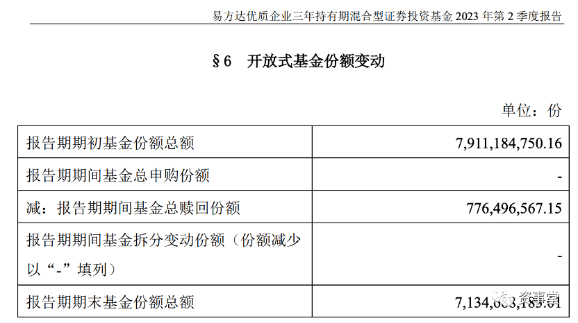2季报显示,该基金报告期赎回份额约7.76亿份,不到该基金期初总份额的十分之一。