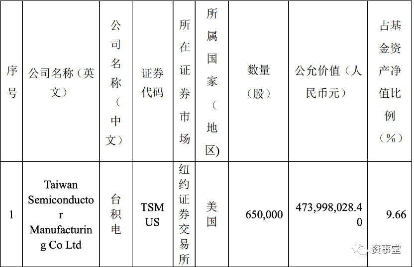 相当明显的是,该基金在2季度大幅加仓台积电,成为了该基金的第一大重仓股。