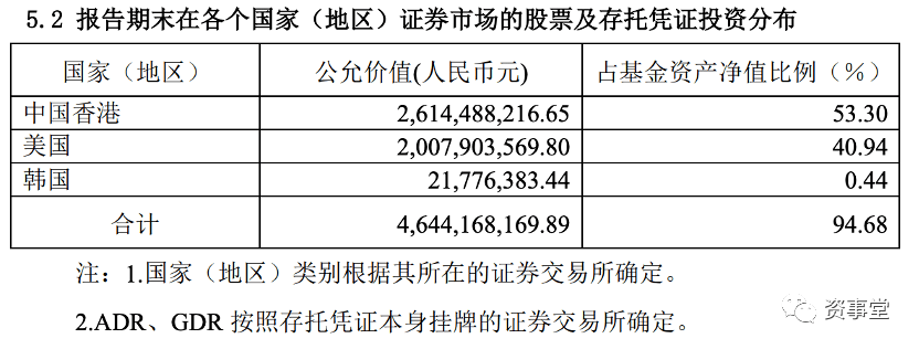 有趣的是,易方达亚洲精选甚至持有了韩国的股票及存托凭证,不过比例相当低,只有0.44%,暂时无法从重仓股名单中发现。