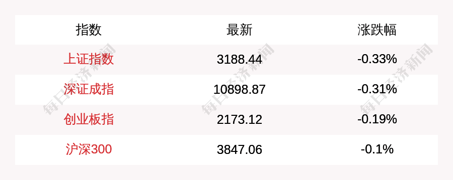 北京时间7月20日11:30,上证指数早盘下跌10.4点,跌幅为0.33%,报收3188.44点,成交额1681.47亿元;深证成指下跌33.78点,跌幅为0.31%,报收10898.87点,成交额2872.19亿元;创业板指下跌4.13点,跌幅为0.19%,报收2173.12点,成交额1244.8亿元;沪深300下跌3.81点,跌幅为0.1%,报收3847.06点,成交额954.52亿元。