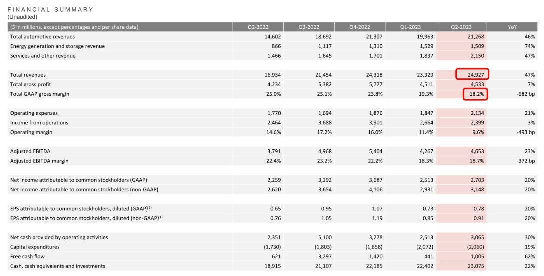 7月20日,特斯拉发布的今年第二季度财报显示,其今年第二季度营收249亿美元,同比增长47%,高于市场预期的245.1亿美元,再创新高;净利润(GAAP)为27.03亿美元,同比增长20%,高于市场预期的23.9亿美元。