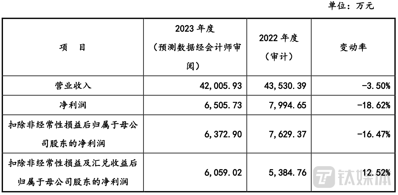 进入2023年,高速增长的业绩并未能持续,反而掉头向下。今年一季度,公司营收、归母净利润分别为7083.36万元、457.69万元,同比分别下降14.58%、22.25%。且公司预计,2023年全年营收为4.20亿元、净利润6505.73万元,同比分别下降约3.50%和18.62%。