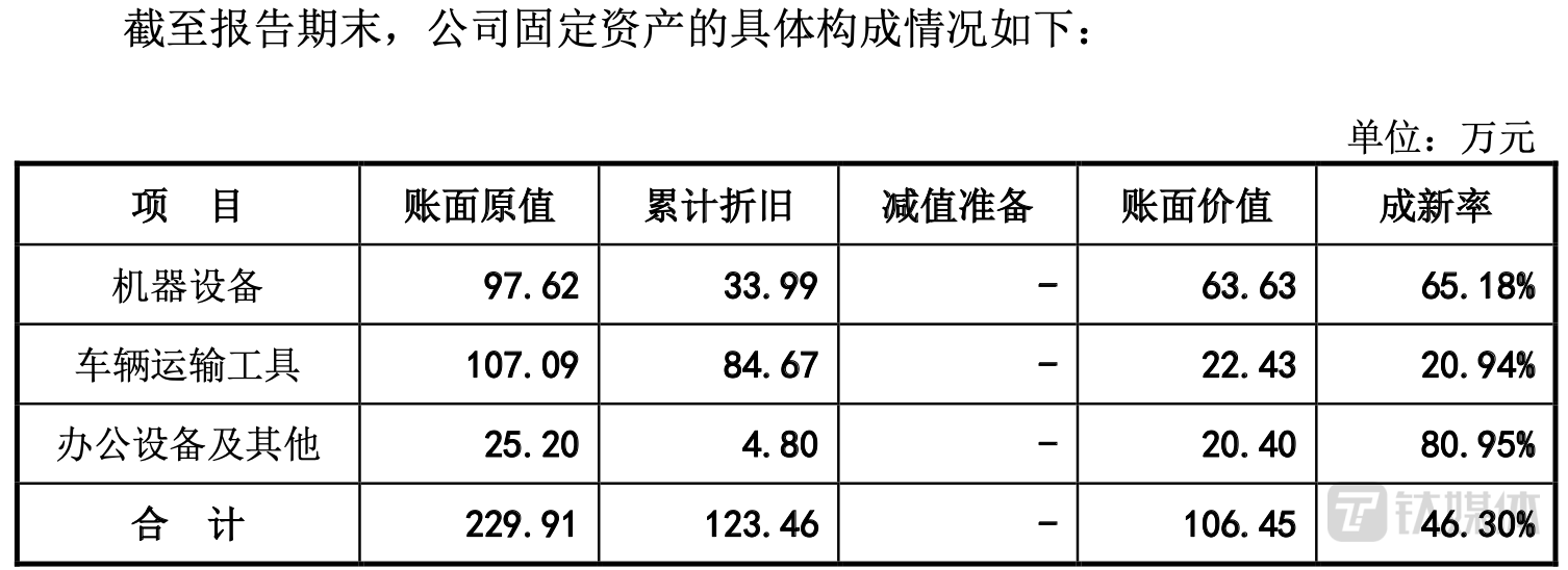 截至2022年末,公司固定资产账面价值仅106.45万元,其中机器设备的账面价值仅63.63万元;账面原值也仅有229.91万元,机器设备账面原值97.62万元。
