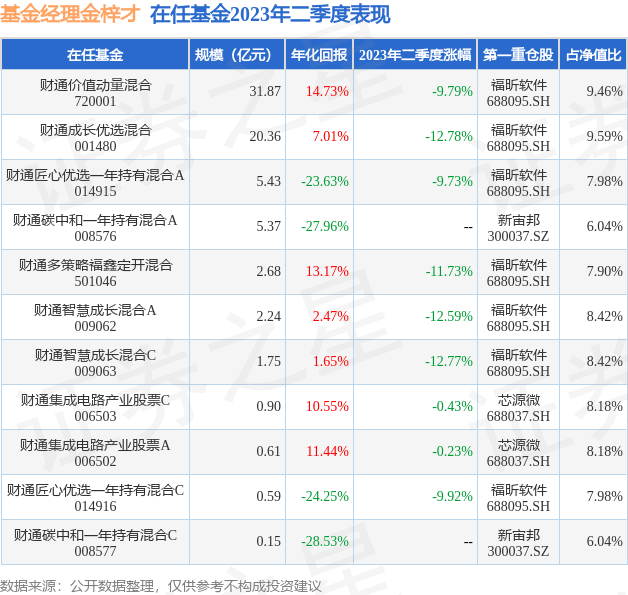 截止2023年二季度末,基金经理金梓才旗下共管理11只基金,本季度表现最佳的为财通集成电路产业股票A(006502),季度净值跌0.23%。