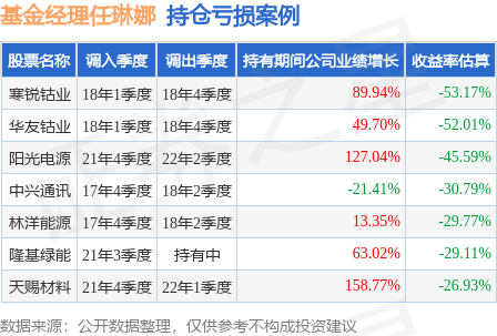 任琳娜管理的申万菱信新能源汽车混合基金在18年1季度买入寒锐钴业,在持有3个季度后在18年4季度卖出。持有期间的估算收益率为-53.17%,持有期间寒锐钴业在2017年到2018年的年报营业总收入增幅达89.94%。