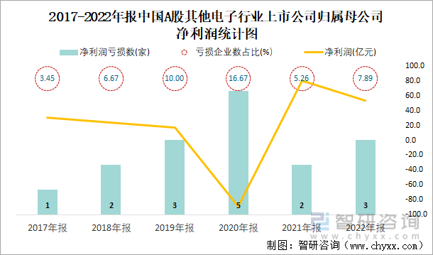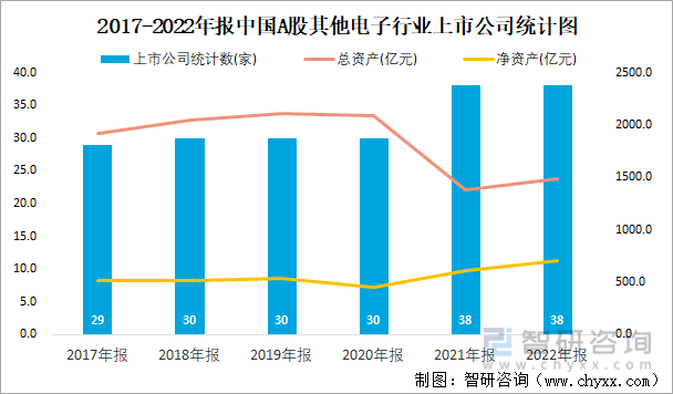 2017-2022年报中国A股其他电子行业上市公司统计图