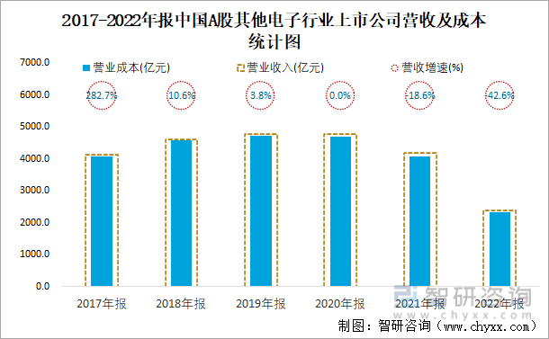 2017-2022年报中国A股其他电子行业上市公司营收及成本统计图