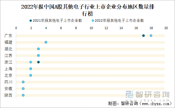 2022年报中国A股其他电子行业上市企业分布地区数量排行榜