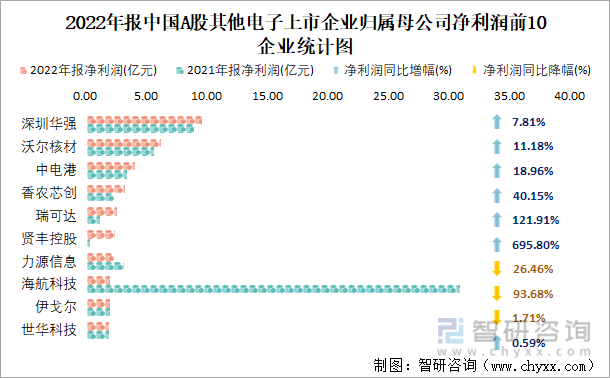 2022年报中国A股其他电子上市企业归属母公司净利润前10企业统计图