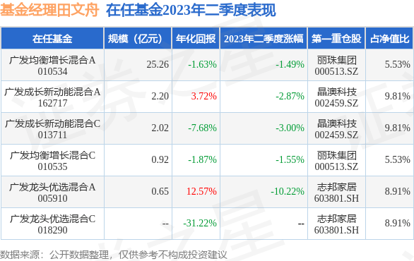截止2023年二季度末,基金经理田文舟旗下共管理6只基金,本季度表现最佳的为广发均衡增长混合A(010534),季度净值跌1.49%。