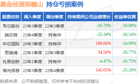 郑巍山管理的银河创新成长混合A基金在21年3季度买入韦尔股份,在持有1年又0个季度后在22年3季度卖出。持有期间的估算收益率为-50.88%,持有期间韦尔股份在2021年到2022年的年报营业总收入降幅为16.7%。