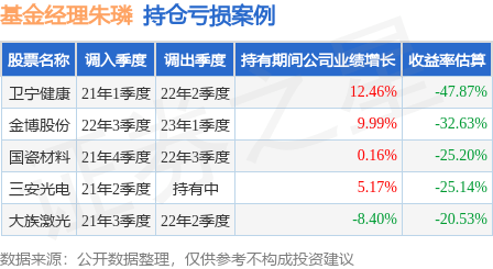 朱璘管理的睿远成长价值混合A基金在21年1季度买入卫宁健康,在持有1年又1个季度后在22年2季度卖出。持有期间的估算收益率为-47.87%,持有期间卫宁健康在2021年到2022年的年报营业总收入增幅达12.46%。