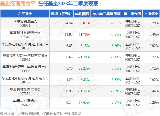 截止2023年二季度末,基金经理周克平旗下共管理8只基金,本季度表现最佳的为华夏核心科技6个月定开混合A(010106),季度净值跌6.66%。