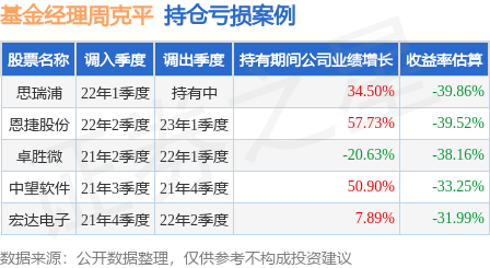 周克平管理的华夏复兴混合A基金在22年1季度买入思瑞浦,已连续持有1年又1个季度。持有期间的估算收益率为-39.86%,持有期间思瑞浦在2021年到2022年的年报营业总收入增幅达34.5%。