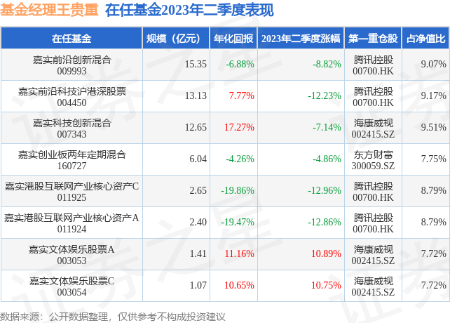 截止2023年二季度末,基金经理王贵重旗下共管理8只基金,本季度表现最佳的为嘉实文体娱乐股票A(003053),季度净值涨10.89%。