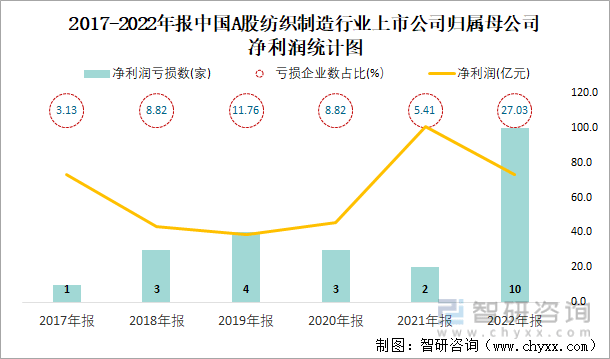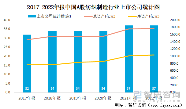 2017-2022年报中国A股纺织制造行业上市公司统计图