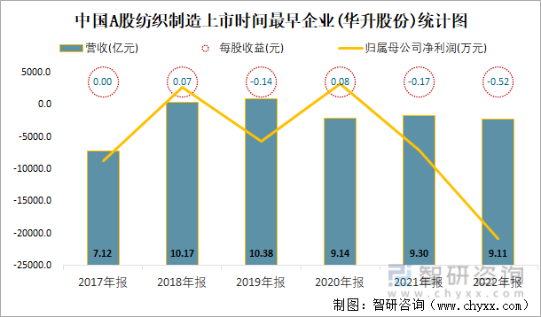 中国A股纺织制造上市时间最早企业(华升股份)统计图