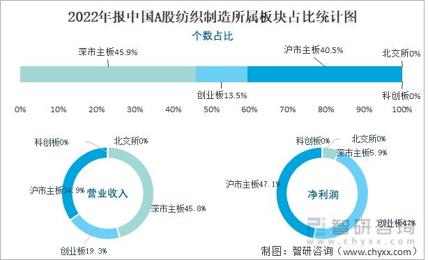 2022年报中国A股纺织制造所属板块占比统计图