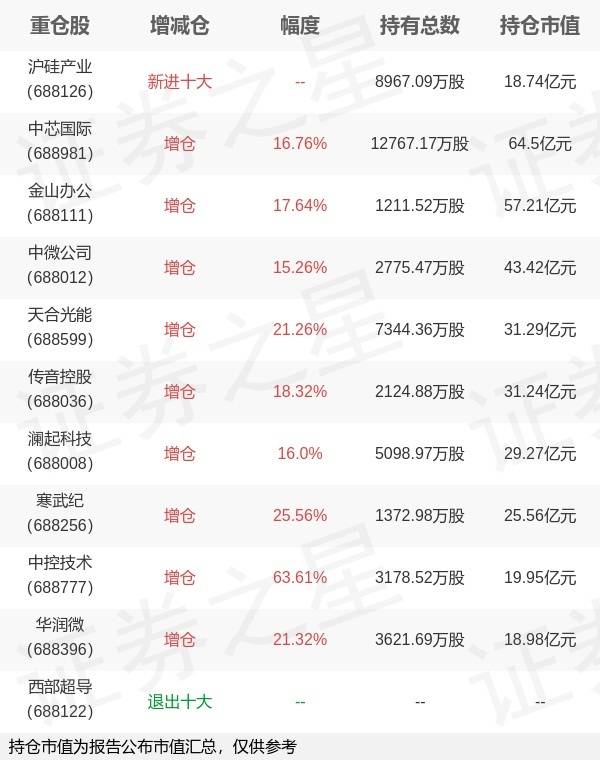 7月20日华夏基金旗下张弘弢 荣膺管理的华夏上证科创板50成份交易型开放式指数基金公布中报,近1年净值增长率-8.2%。与上一季度相比,该基金前十大重仓股新增沪硅产业;并对中芯国际增仓1832.53万股,为该基金第一大重仓股;西部超导等退出前十大重仓股;详细数据如下: