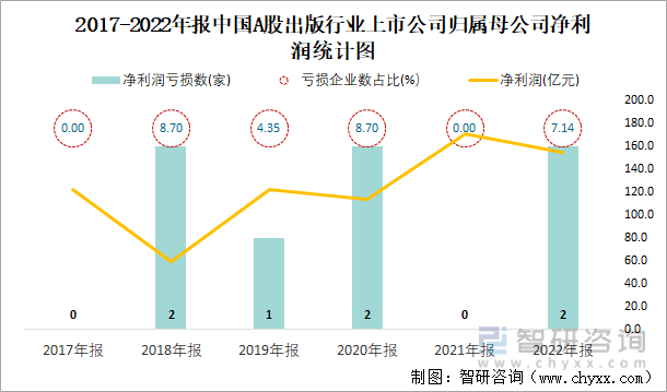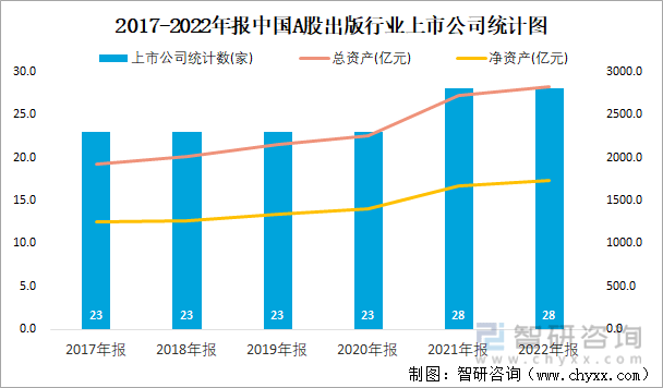 2017-2022年报中国A股出版行业上市公司统计图