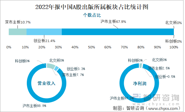 2022年报中国A股出版所属板块占比统计图