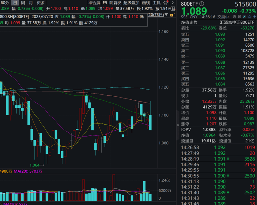 主流ETF方面,800ETF(515800)午后震荡走弱,现跌0.73%。