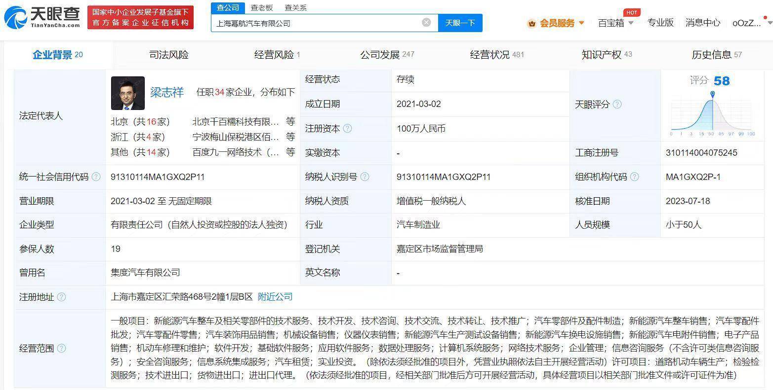 去年12月,该公司由集度汽车有限公司改为现名,引发舆论关注。对此,集度方面回应称,集度的主体叫上海集度汽车有限公司,“这个公司(上海幂航汽车有限公司)目前跟集度没啥关系”。业内猜测,可能是集度汽车在变更公司主体。