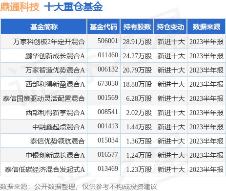 重仓鼎通科技的前十大公募基金请见下表: