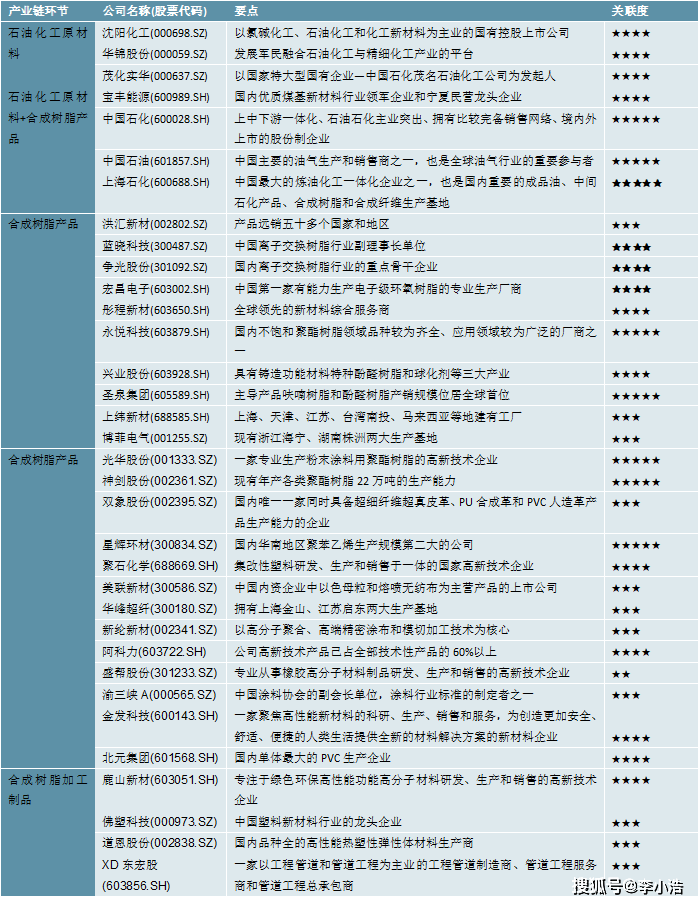 图表:中国合成树脂行业上市公司汇总